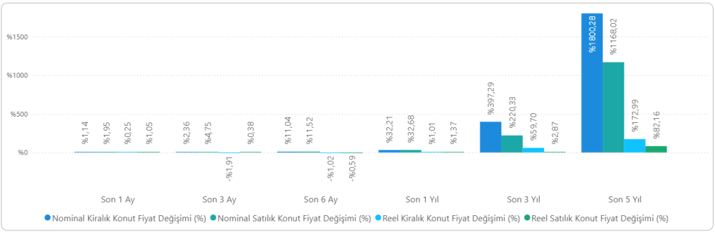 2025 Aralık ayında bir önceki aya göre nominal olarak 1.14% , reel olarak ise 0.25% oranında artan Türkiye Kiralık Konut Fiyat Endeksi, bir önceki yılın aynı dönemine göre nominal olarak 32.21%, reel olarak ise 1.01% artmıştır.